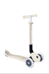 קורקינט לילדים 3 גלגלים גלובר פרימו ג'וניור מתקפל עם אורות בגלגלים (האורות ניתנים לביטול) Globber Primo Junior foldable מנגנון היגוי בהטייה, גובה מתכוונן, צבע לבן קוקוס (Copy)