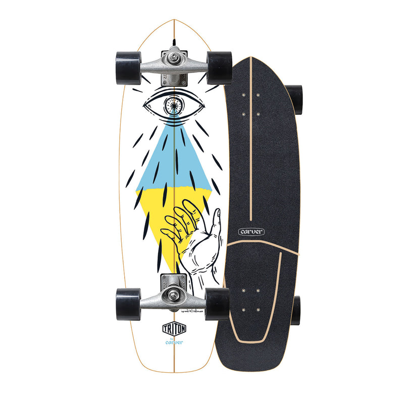 סרף סקייט TRITON על ידי המותג האמריקאי המקורי CARVERמוצר מוביל מסוג SURF SKATE, לוגבורד/קרוזר מדמה גלישה בעל מנגנון ייחודי בצירי הגלגלים שגורם לתנועות גוף מיומנות של הרוכב לאגור את האנרגיה ולשחרר אותה ליצירת תנועה קדימה של הכלי ללא צורך בהורדת הרגל ובדחיפת המשטח ובאופן המאפשר היגוי וביצוע תנועה של הסקייטבורד על המשטח המדמה באופן ייחודי את התנועה של הגלישה על גל.מוצר מומלץ לילדים לנוער ולבוגרים המעוניינים בסקייטבורד מדמה תנועת גלישה בים המקנה שליטה ומיומנות בתנועות הגוף בשיווי משקל ובפיתוח סגנון ייחודי לגלישה ורכיבה.דגם זה כולל בורד קטן עם צורת זנב דג שקל לזרוק אותו לסיבובים, Guidance הוא חותך המדרכות המושלם עבור רוכבים שרוצים בורד שקל מאוד לתפוס בו תאוצה עם תזוזות לצדדים. הגרפיקה על ידי איגנסיו וילנואבה. *תואם לגלגלי Carver 68mm Mag, 69mm קעור ו-70mm Mag*