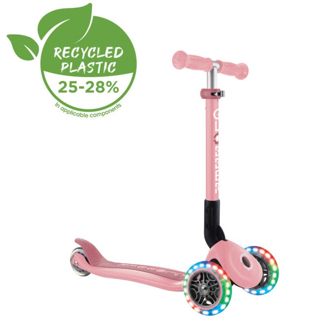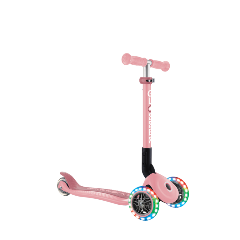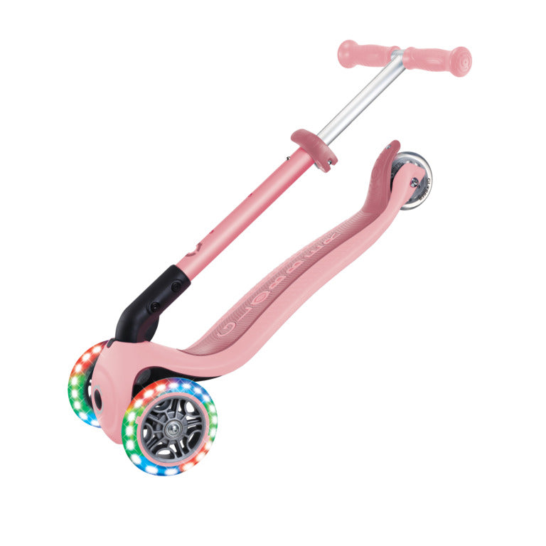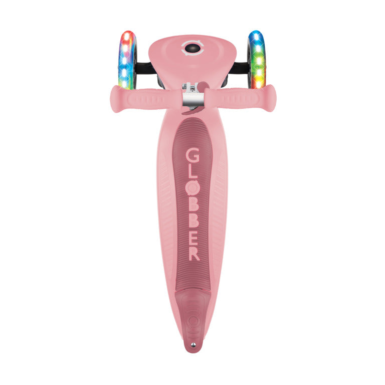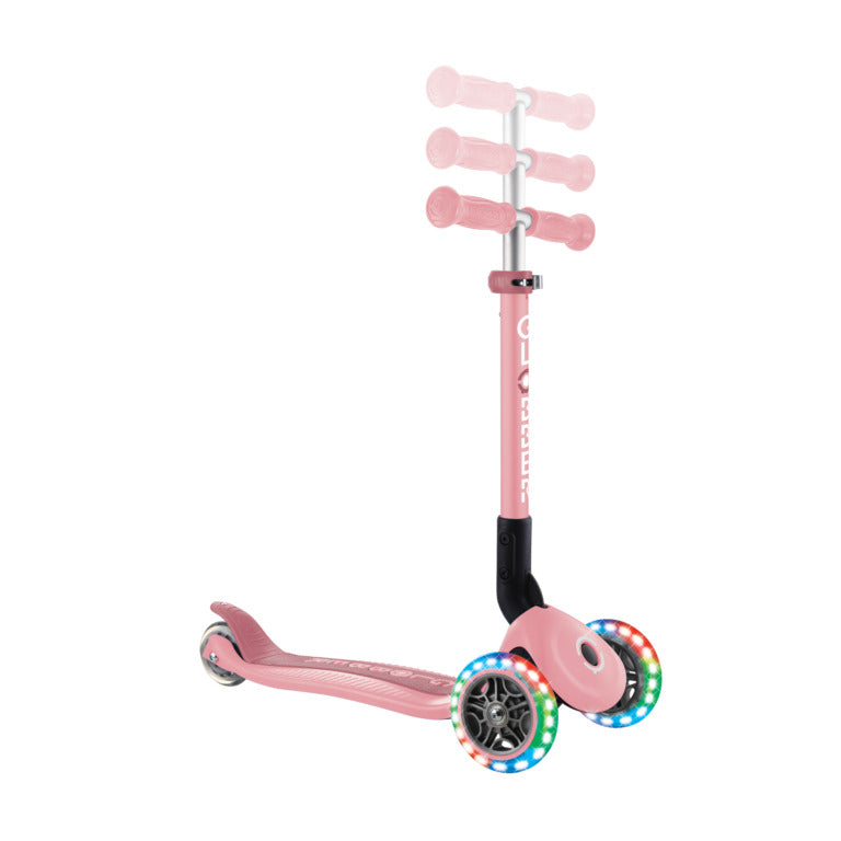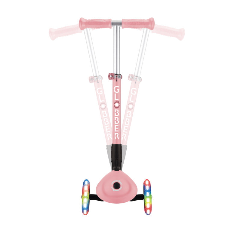 קורקינט לילדים 3 גלגלים גלובר פרימו ג'וניור מתקפל עם אורות בגלגלים (האורות ניתנים לביטול) ורוד פסטל Globber Primo Junior foldable מנגנון היגוי בהטייה, גובה מתכוונן