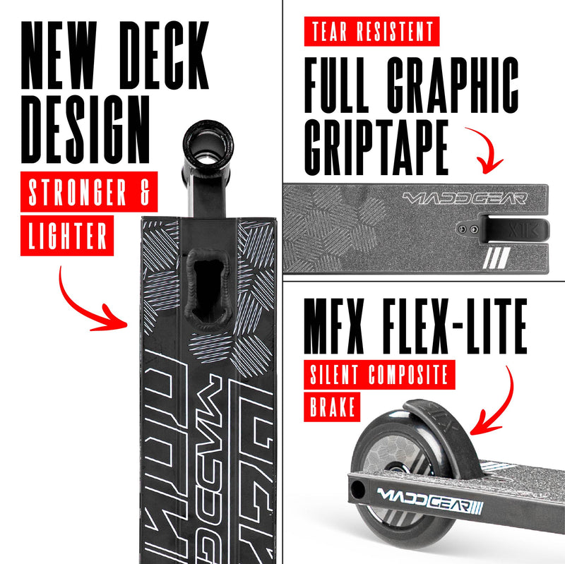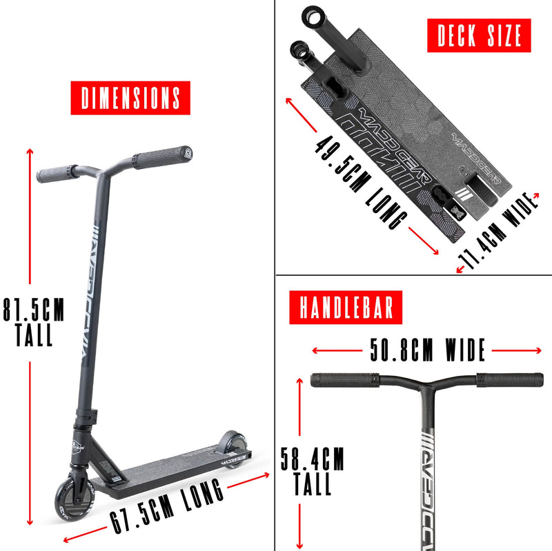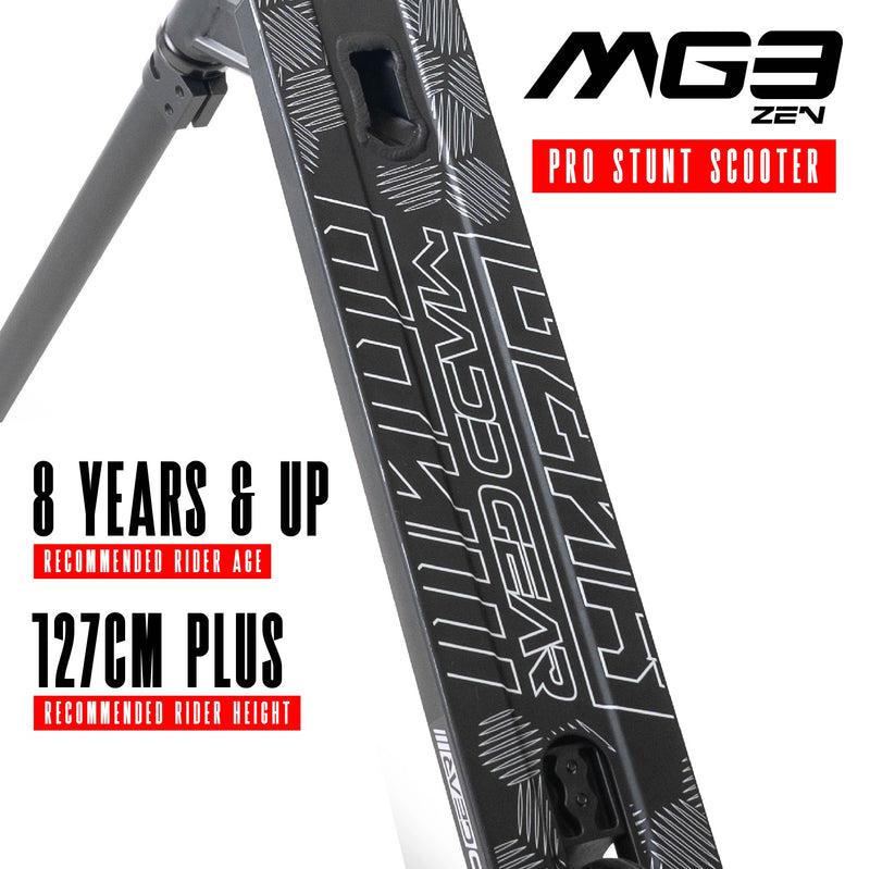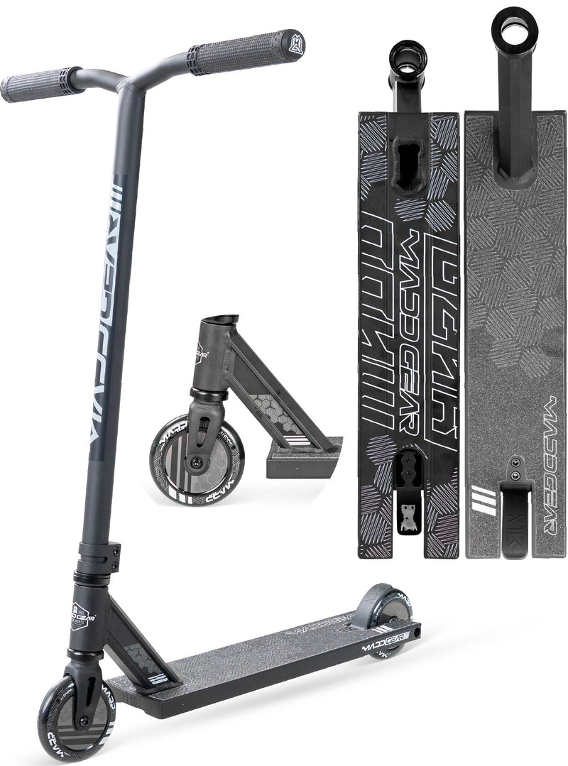 קורקינט פעלולים מקצועי לילדים 5-12 MG3 ZEN בצבע שחור, סקוט קל משקל ועמיד של המותג הגדול בעולם Madd Gear