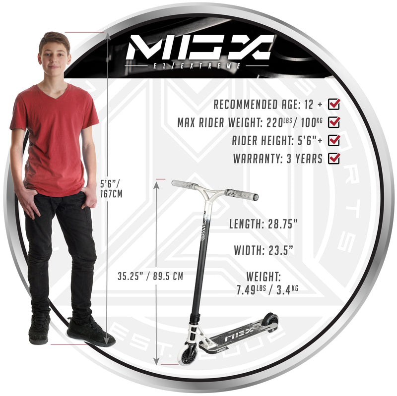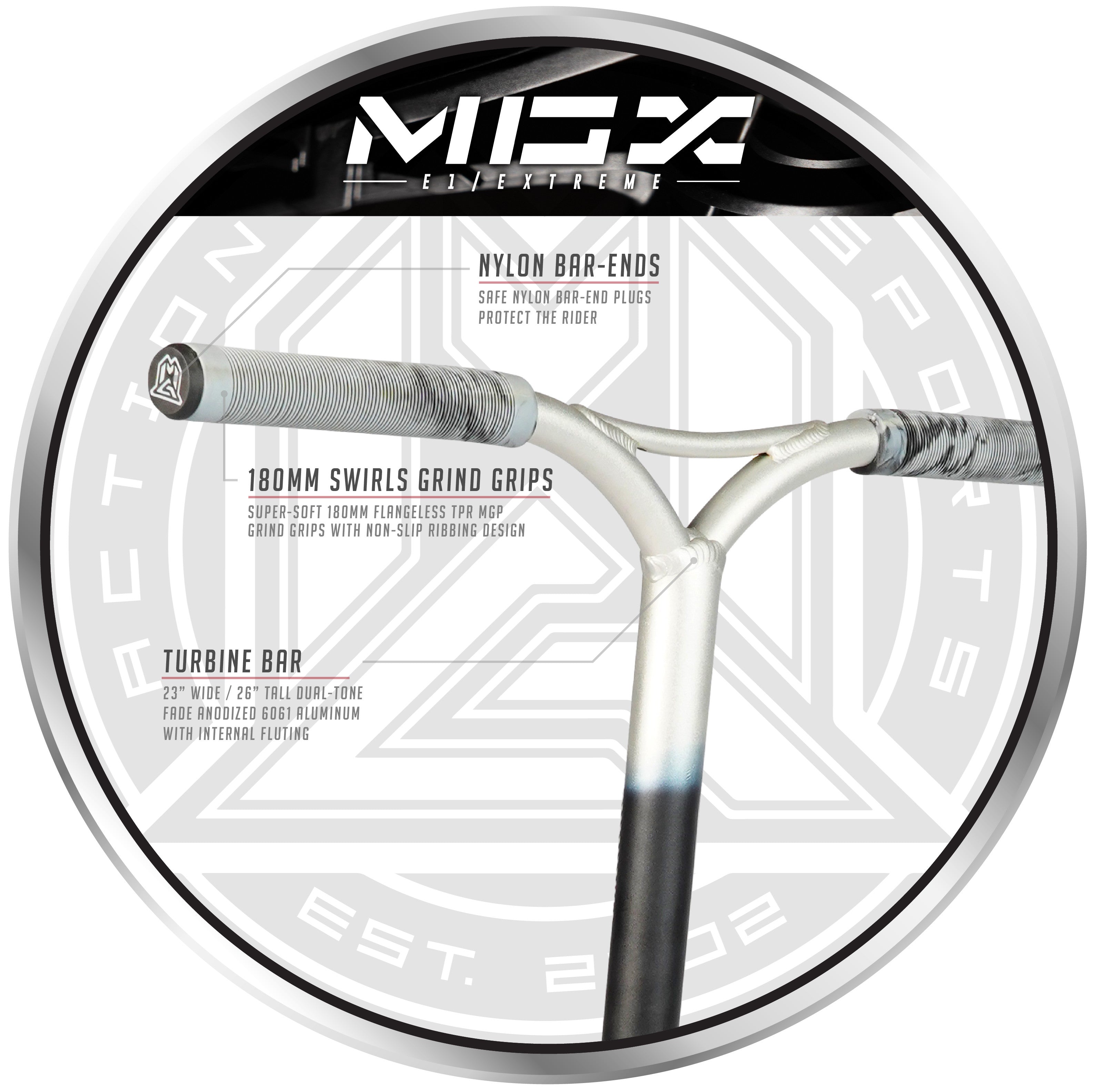 ה-MGX E1 Extreme דגם ה"אקסטרים" של MGP מתאים לבנים ולבנות מגיל 12 ועד משקל רוכב מירבי של 100 ק"ג.