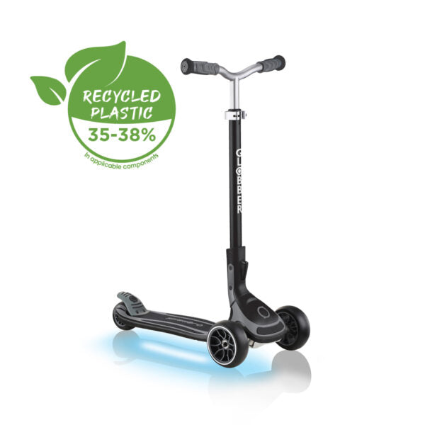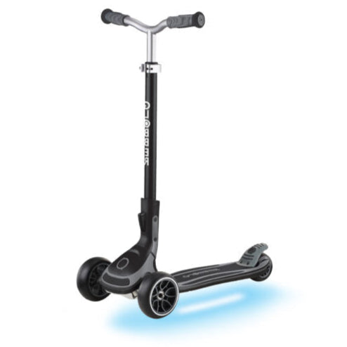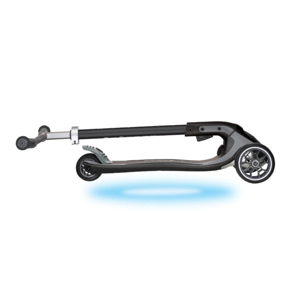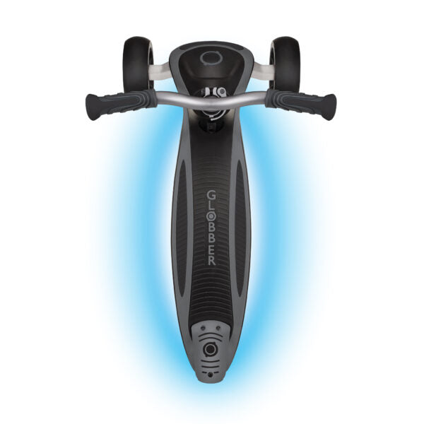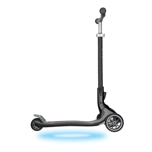 קורקינט 3 גלגלים גלובר אולטימום Globber Ultimum Lights מנגנון היגוי בהטייה, גובה מתכוונן, צבע שחור אפור עם תאורת לד מתחת למשטח
