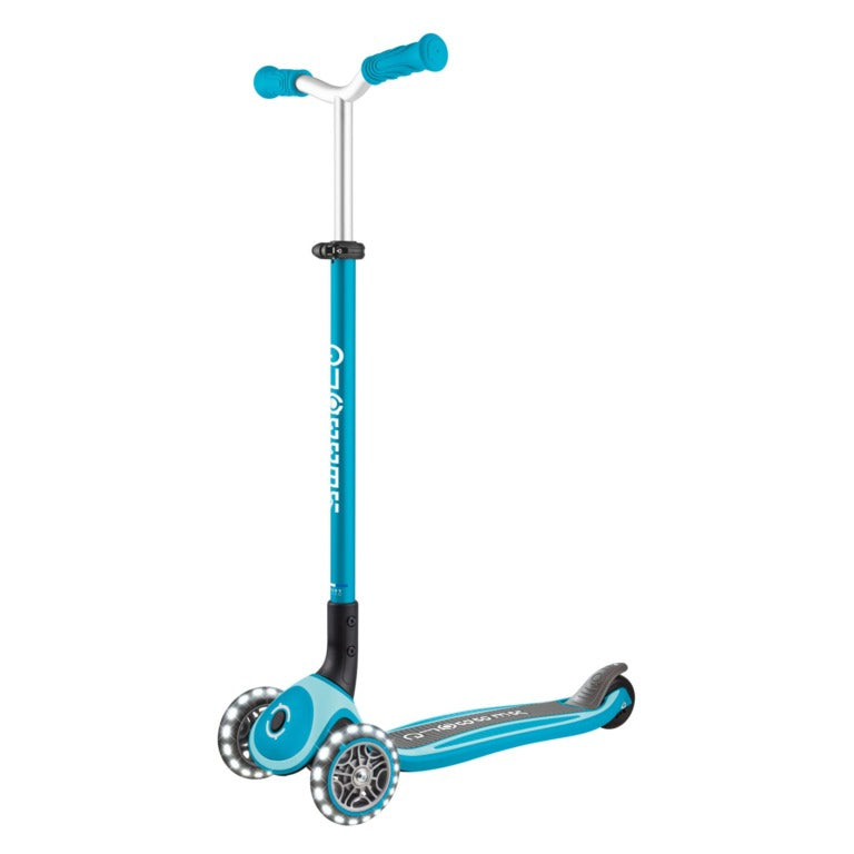 קורקינט 3 גלגלים גלובר מאסטר עם אורות בגלגלים Globber Master lights מנגנון היגוי בהטייה, גובה מתכוונן, צבע כחול