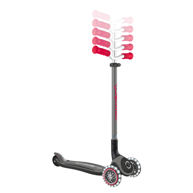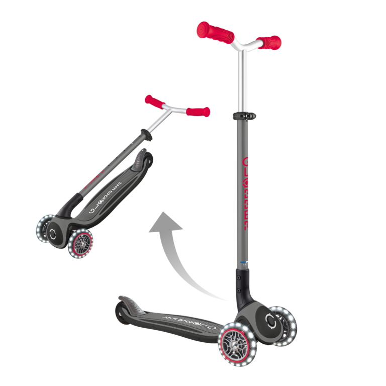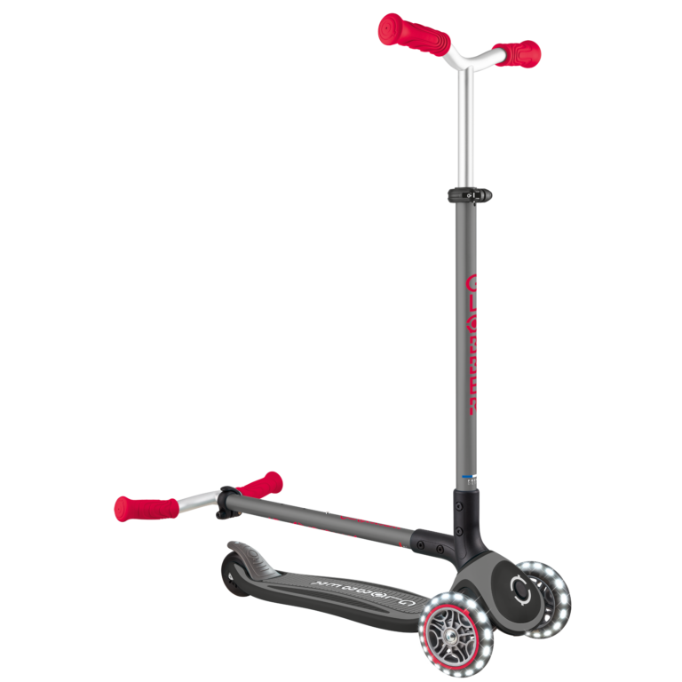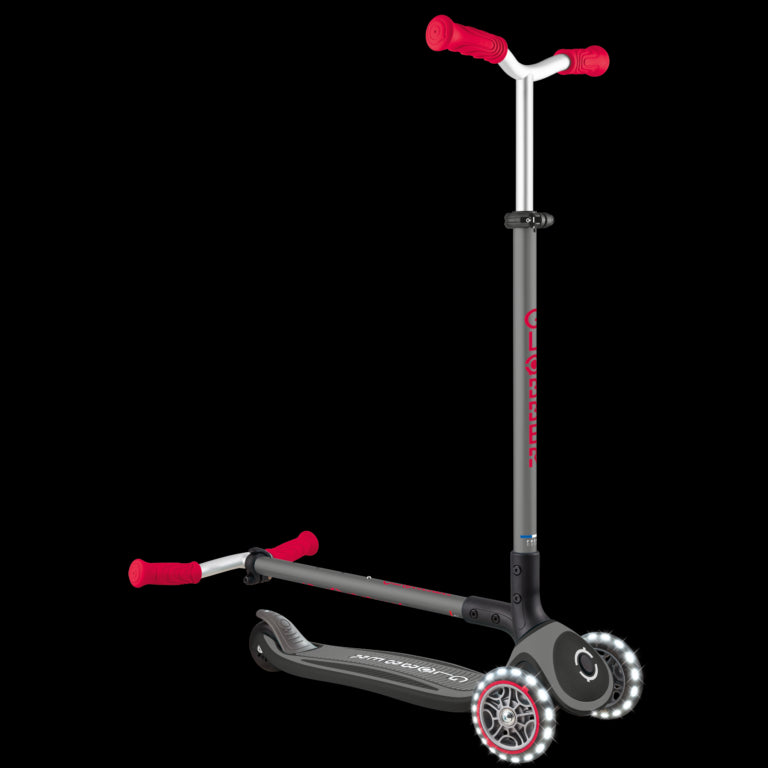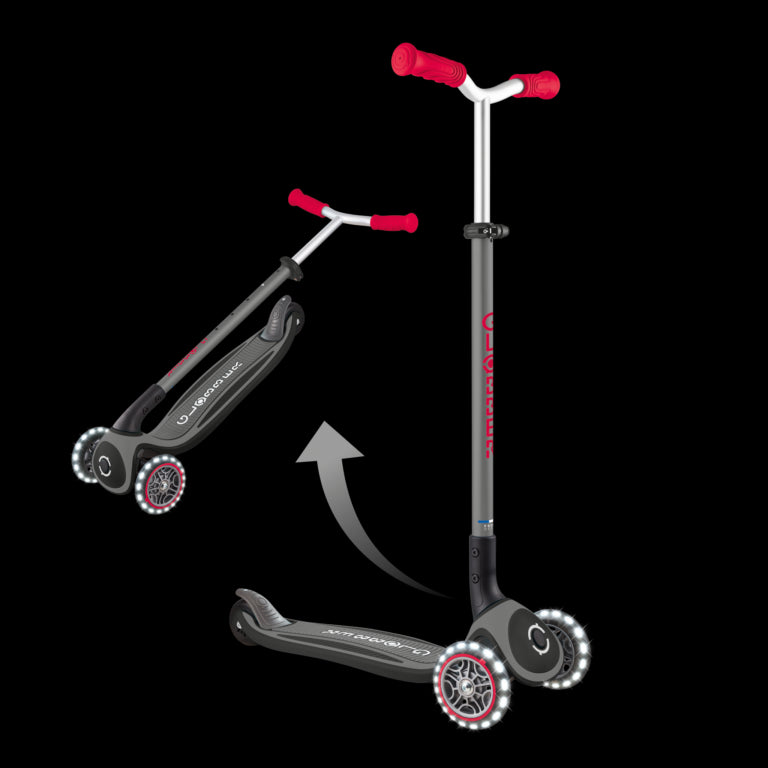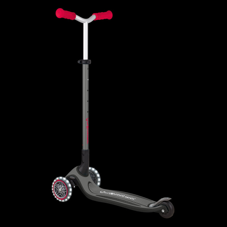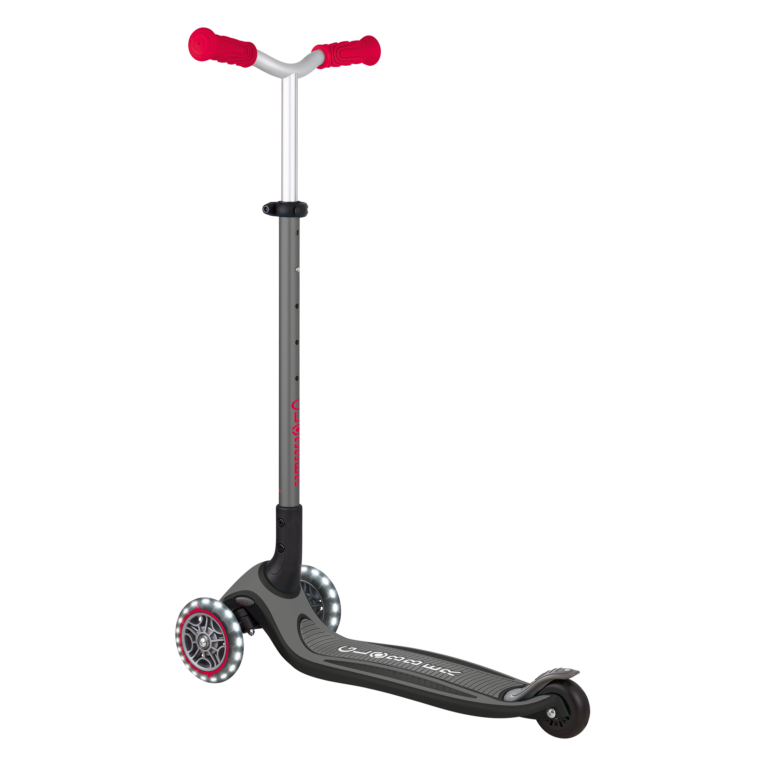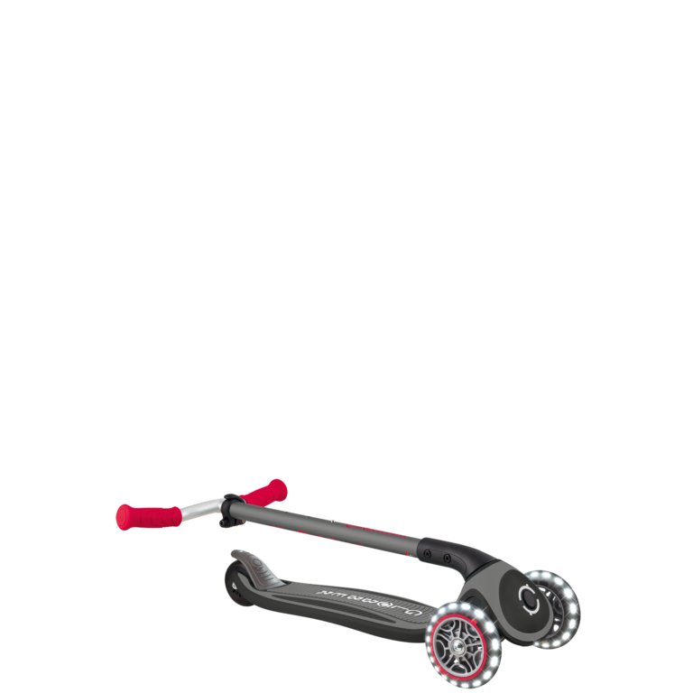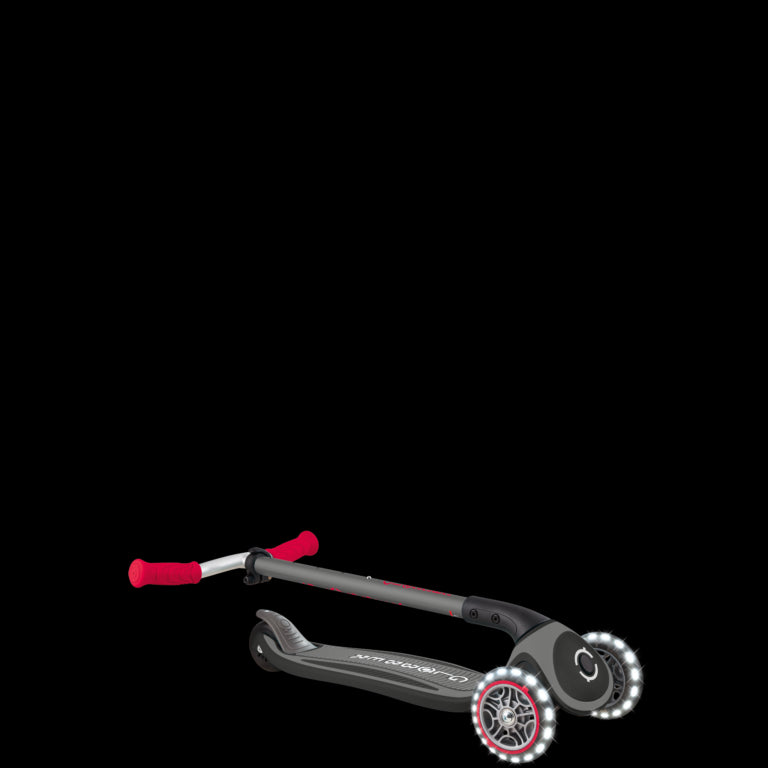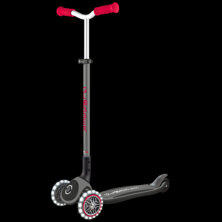 קורקינט 3 גלגלים גלובר מאסטר עם אורות בגלגלים Globber Master lights מנגנון היגוי בהטייה, גובה מתכוונן, צבע שחור אדום