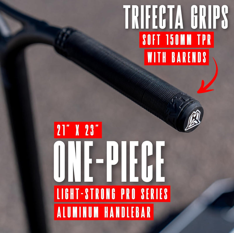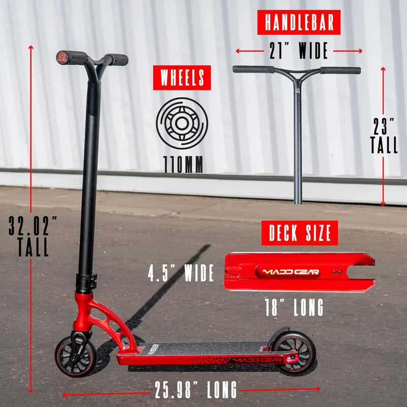 הסקוט כולל משטח דריכה (DECK) באורך 17.5 אינץ’, ורוחב של 4.5 אינץ’, מה שיוצר פלטפורמה מוצקה לנחיתה של הטריקים שלך. הכידון פרופורציונלי שיהיה נוח ברוחב 21 אינץ’ ובגובה 23 אינץ’ ומאפשר התקדמות קלה ויכולת נסיעה ושליטה מעולים.