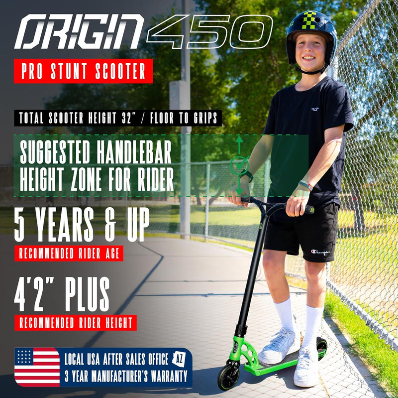 האוריג'ין 450 מוכן לרכיבה ישר מהקופסה (יש להרכיב את הכידון על מקומו ולהדק שני ברגים עם מפתח מצורף) ויותר ממסוגל לקחת על עצמו הכל בסקייטפארק וברחוב!